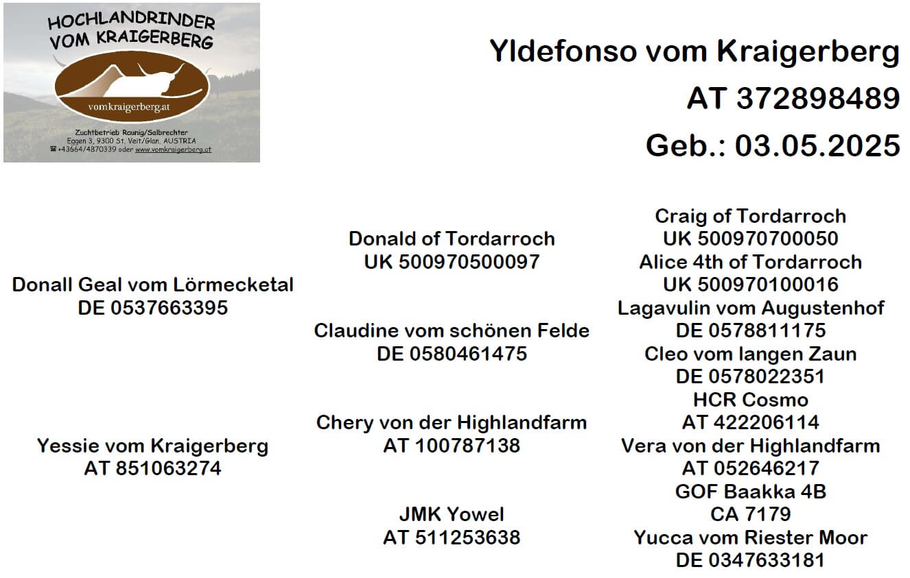 Zuchtstier Yldefonso vom Kraigerberg, geb. 2025